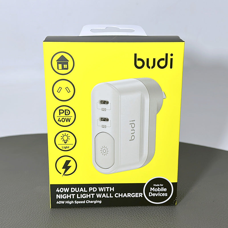 Budi dual pd 40w with night light wall charger m8j030ad