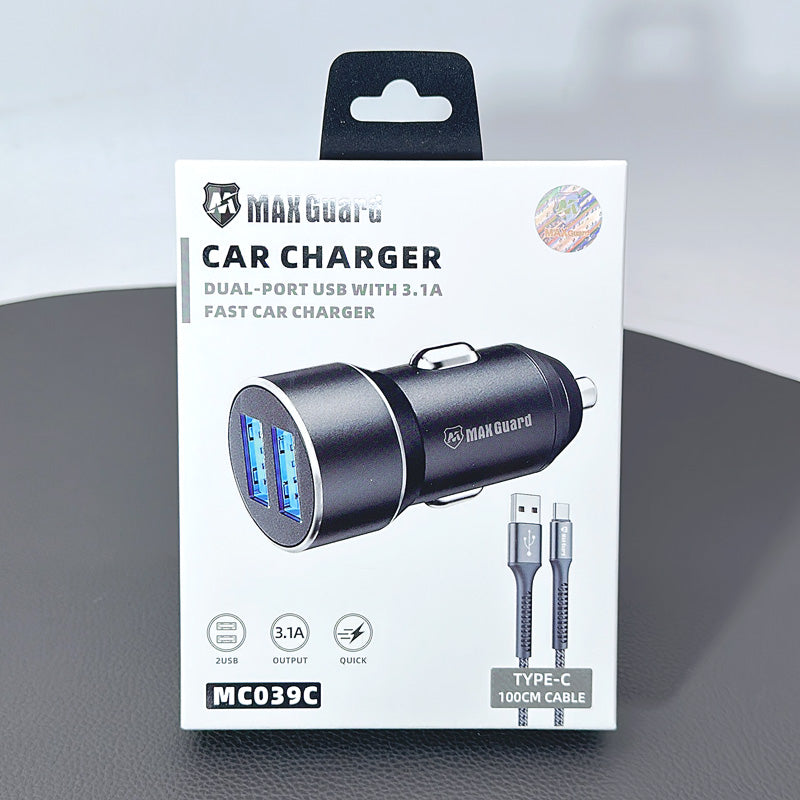 Maxguard 3.1a car charger with 1m type-c cable mc039c