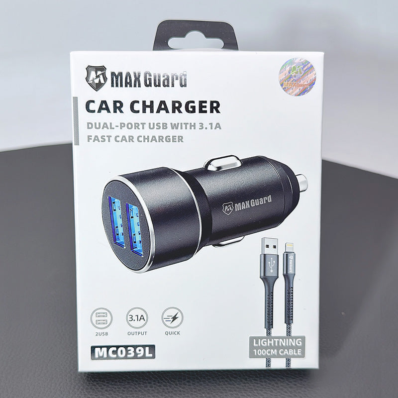 Maxguard 3.1a car charger with 1m lightning cable mc039l